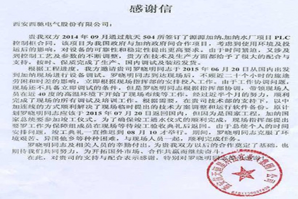 了解詳情 +西安西馳電氣股份有限公司:貴我雙方2014年9月通過航天504所簽訂了源源加納.加納水廠項目PLC控制柜合同,該項目為我國政府與加納政府間合作項目,考慮到使用環境及投運后的影響,對...